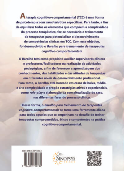 É o primeiro material/baralho para treinamento de terapeutas cognitivo-comportamentais no mercado. Envolve os elementos essenciais para o desenvolvimento de habilidades clínicas.