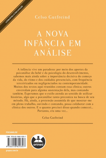 Em seu mais recente livro — A nova infância em análise —, Celso Gutfreind, unindo psicanálise e linguagem poética, nos convida a olhar para a nova realidade da infância e a acompanhar seu trabalho junto a crianças e seus pais. Nas palavras do autor: