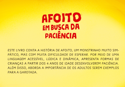 Este livro conta a história de Afoito, um monstrinho muito simpático, mas com muita dificuldade de esperar. Em uma conversa com sua professora, ele descobre que todos já nascem com paciência, mas precisam treinar para usá-la.