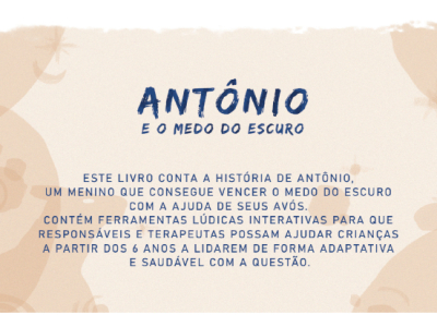 Este livro conta a história de Antônio, um menino que consegue vencer o medo do escuro com a ajuda de seus avós. Contém ferramentas lúdicas interativas para que responsáveis e terapeutas possam ajudar crianças a lidarem de forma adaptativa e saudável com a questão.