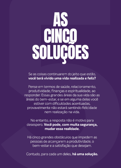 É um guia prático e definitivo com as cinco soluções para o desenvolvimento do senso de bem-estar, realização e felicidade: hábitos valiosos, gestão das emoções, gestão dos pensamentos, novas habilidades e ambiente certo. Escrito em linguagem acessível, é um resumo do que há de mais evidências em psicologia atual para a melhora e realização na qualidade de vida.