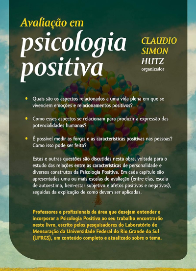 Neste livro, escrito pelos pesquisadores do Laboratório de Mensuração da Universidade Federal do Rio Grande do Sul (UFRGS), os leitores encontrarão uma diversidade de escalas de avaliação (entre elas, escala de autoestima, bem-estar subjetivo e afetos positivos e negativos), seguidas da explicação de como devem ser aplicadas, que os auxiliarão a entender e incorporar a Psicologia Positiva ao seu trabalho.