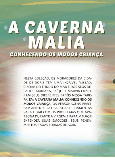 Este manual para terapeutas apresenta a coleção. Além de trazer os principais conceitos em terapia do esquema para crianças e adolescentes (TE-CA), orienta sobre a utilização prática dos cinco livros que contam as aventuras dos personagens Mariana, Caíque e Marvin e seus modos esquemáticos representados por criaturas marinhas.