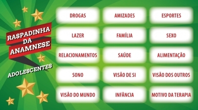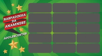 Difícil fazer anamnese com adolescentes? Com a "Raspadinha da Anamnese" tudo ficará mais fácil. De uma maneira lúdica todos os principais temas poderão ser abordados apartir do momento em que o adolescente raspar a cartela e o tema aparecer. "Raspou, Falou". A mesma dinâmica valerá para os pais dos adolescentes que deverão falar sobre os temas raspados.
