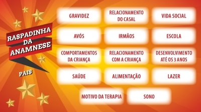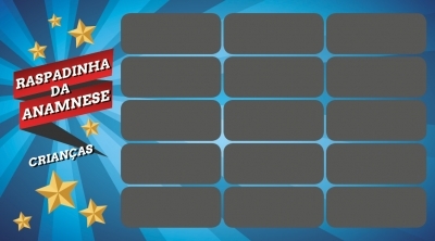 Difícil fazer anamnese com crianças? Com a "Raspadinha da Anamnese" tudo ficará mais fácil. De uma maneira lúdica todos os principais temas poderão ser abordados apartir do momento em que a criança raspar a cartela e o tema aparecer. "Raspou, Falou". A mesma dinâmica valerá para os pais das crianças, que deverão falar sobre os temas raspados.
