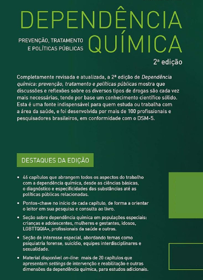 Completamente revisada e atualizada, a 2ª edição de Dependência química: prevenção, tratamento e políticas públicas mostra que discussões e reflexões sobre os diversos tipos de drogas são cada vez mais necessárias, tendo por base um conhecimento científico sólido.