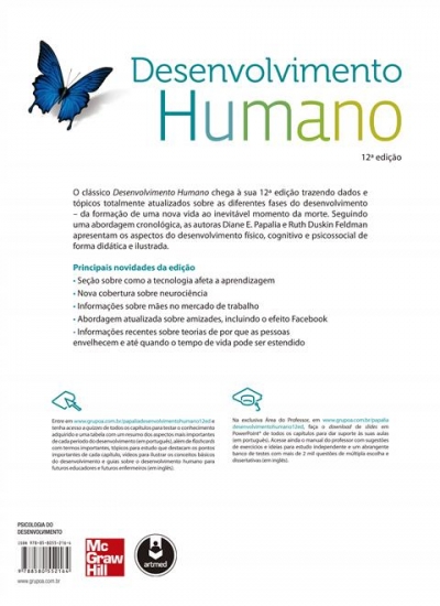 O clássico Desenvolvimento Humano chega à sua 12ª edição trazendo dados e tópicos totalmente atualizados sobre as diferentes fases do desenvolvimento, da formação de uma nova vida ao inevitável momento da morte. Seguindo uma abordagem cronológica, as autoras Diane E. Papalia e Ruth Duskin Feldman apresentam os aspectos do desenvolvimento físico, cognitivo e psicossocial de forma didática e ilustrada. Principais novidades da edição Seção sobre como a tecnologia afeta a aprendizagem Nova cobertura sobre neurociência Novas informações sobre mães no mercado de trabalho Cobertura atualizada sobre amizades, incluindo o efeito Facebook Informações atualizadas sobre teorias de por que as pessoas envelhecem e até quando o tempo de vida pode ser estendido.Veja também