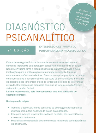 Ricamente ilustrado por exemplos clínicos, este aclamado guia clínico e livro amplamente adotado atende uma demanda importante da abordagem psicodinâmica. A autora aborda os principais tipos de caráter e demonstra que a compreensão da estrutura da personalidade individual do paciente pode influenciar o foco do terapeuta e o estilo da intervenção utilizada. Orientações são propostas para que se formule um diagnóstico sistemático, porém flexível.