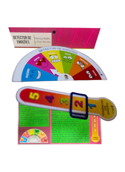 O Detector de emoções ajuda a criança, de forma rápida e fácil, a detectar qual entre as seis emoções básicas está ativada. O Termômetro das emoções ajuda a criança a quantificar temperatura (intensidade) da emoção.