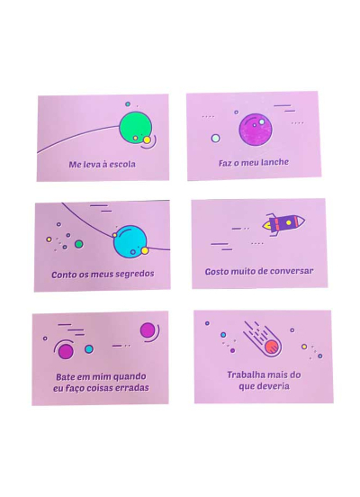 O jogo contém 41 cartas de comportamentos e 9 cartas de personagens e é indicado para crianças verbais acima de 4 anos, podendo ser utilizado em psicoterapia infantil, terapia de família ou em contexto que sejam relevantes à avaliação de habilidades parentais.