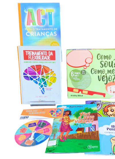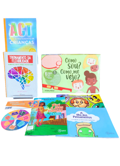 Com o objetivo de transformar a sua prática na clínica infantil, este kit reúne um livro teórico para a aplicação da ACT com crianças e outro para treinar a flexibilidade, dois livros infantis que abordam as distorções cognitivas e um livro psicoeducativo em formato de quadrinhos que aborda, também, a terapia de aceitação e compromisso com crianças e adolescentes. Além disso, compõem o kit um jogo que permite, dentre suas funções, o monitoramento do humor e um recurso terapêutico para identificação de pensamentos. Conheça os produtos!