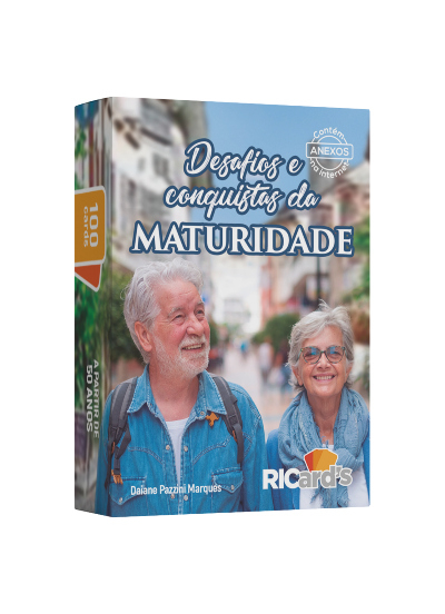 Quais os maiores desafios e conquistas da maturidade? Este conjunto de cards convida você a refletir sobre as experiências dessa fase da vida! Um despertar para novos olhares, perspectivas e objetivos. Um exercício para o autoconhecimento em que o processo de envelhecimento é visto como algo natural e um tempo valioso para colheita. Pode ser utilizado individualmente, com a família, amigos ou em grupos por terapeutas e profissionais que atuam com o público sênior. Uma ferramenta para orientar, fortalecer e valorizar essa fase da vida.