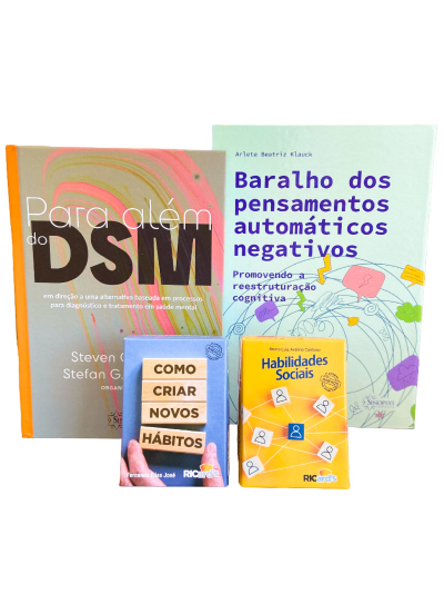 Descubra como criar uma abordagem personalizada e eficaz no tratamento de problemas psicológicos com o recurso clínico do livro Para além do DSM. Com o auxílio do Baralho dos pensamentos automáticos e dos cards Habilidades sociais e Como criar novos hábitos, você ajudará seus clientes a ampliarem seu repertório para enfrentarem os problemas cotidianos de forma dinâmica e colaborativa. Não perca a oportunidade de revolucionar suas sessões clínicas e ter ainda mais sucesso em seus tratamentos!