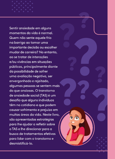 Neste livro, são apresentadas estratégias que ajudam na reflexão sobre o TAS e direcionam a busca de tratamentos efetivos para lidar com o transtorno e desmistificá-lo.