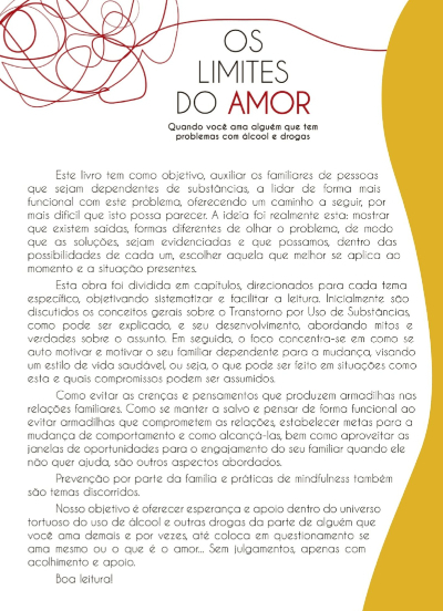 Nosso objetivo é oferecer esperança e apoio dentro do universo tortuoso do uso de álcool e outras drogas da parte de alguém que você ama demais e por vezes, até coloca em questionamento se ama mesmo ou o que é o amor... Sem julgamentos, apenas com acolhimento e apoio. Boa leitura!