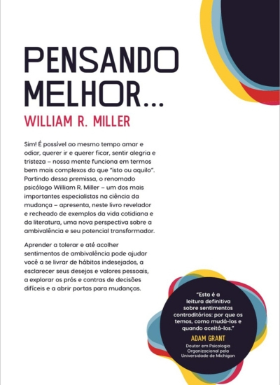 Neste livro acessível e cheio de exemplos, William R. Miller - psicólogo especialista na ciência da mudança - mostra como aprender a tolerar e até acolher sentimentos de ambivalência pode ajudar você a se livrar de hábitos indesejados, a esclarecer seus desejos e valores pessoais, a explorar os prós e contras de decisões difíceis e a abrir portas para mudanças em sua vida.