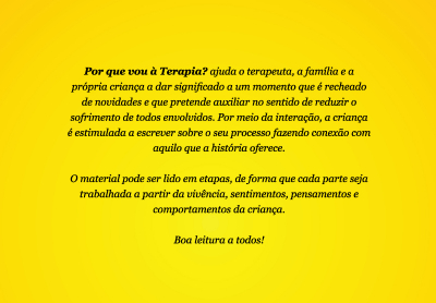 Porque vou à Terapia? ajuda o terapeuta, a família e a própria criança a dar significado a um momento que é recheado de novidades e que pretende auxiliar no sentido de reduzir o sofrimento de todos envolvidos.