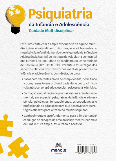 Este livro conta com a ampla experiência da equipe multidisciplinar no atendimento de crianças e adolescentes no Hospital-Dia Infantil do Serviço de Psiquiatria da Infância e Adolescência (SEPIA) do Instituto de Psiquiatria do Hospital das Clínicas da Faculdade de Medicina da Universidade de São Paulo (IPq-HCFMUSP). Oferece a atualização dos aspectos clínicos dos transtornos mentais presentes na infância e adolescência, com destaque para: