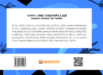 Este livro conta a história de Letícia, João, Levi e Maria Fernanda, crianças que, como tantas outras, vivenciaram ou testemunharam situações traumáticas. Tem como objetivo ajudar pacientes com transtorno de estresse pós-traumático (TEPT) a lidarem com pensamentos disfuncionais, emoções intensas e comportamentos desadaptativos decorrentes.