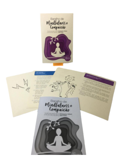 O Baralho de mindfulness e compaixão oferece a educadores, pais, professores e todos os profissionais que trabalham com crianças, jovens e adultos a oportunidade de desenvolverem no dia a dia, por meio de jogos e brincadeiras, situações para aumentarem a consciência, a bondade e a conexão. Contém um manual e 40 cartões, cada um deles com o público a qual se destina, o material necessário para a prática e as instruções do jogo ou do exercício proposto, para realizar individualmente ou com outras pessoas.