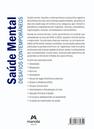 Saúde mental: desafios contemporâneos compartilha registros de profissionais das mais diversas especialidades, atuantes na área da saúde seja em clínica e/ou pesquisa, que viveram a pandemia e trabalharam em hospitais, clínicas, consultórios, organizações, escolas, universidades e ambulatórios.