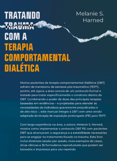 Com larga experiência na área, a autora, Melanie S. Harned, mostra como implementar o protocolo DBT PE com pacientes DBT que alcançaram a segurança e a estabilidade necessárias para se engajar no tratamento focado no trauma. Este livro inclui diretrizes sessão por sessão, ricos exemplos de casos, dicas clínicas e 35 formulários reproduzíveis que podem ser baixados e impressos para uso repetido.