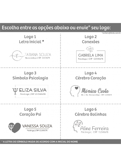 Pode ser com seu LOGO ou com uma de nossas opções de LOGO. Os PDFs são feitos em nome do profissional, precisará constar o nome e CRP do mesmo.
