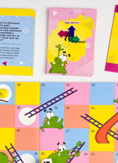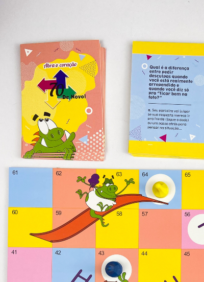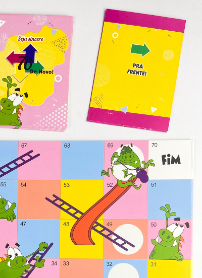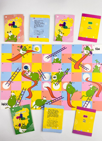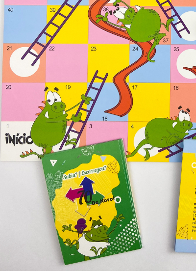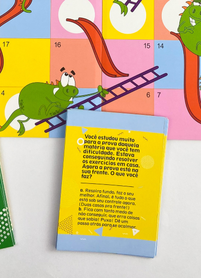 É um jogo para treino de resolução de problemas e análise de consequências com crianças por meio de uma brincadeira de “sobe e desce”. Propõe situações a serem analisadas ou resolvidas, e as respostas da criança a levarão para frente ou para trás, para cima ou para baixo no jogo. Muito bom também para crianças que precisam aprender a lidar com frustrações.