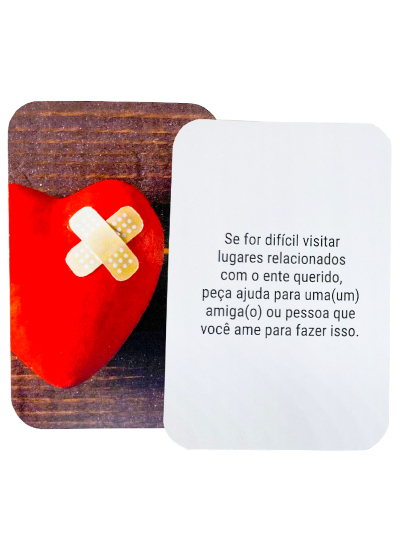 Lidar com uma perda pode ser difícil e, às vezes, precisamos de ajuda. As emoções e reações decorrentes do luto podem acontecer após o falecimento de uma pessoa querida, mas também após outras perdas ou grandes mudanças em nossa vida. Nestes cards você encontrará dicas, pensamentos e estratégias que auxiliarão nesse processo.