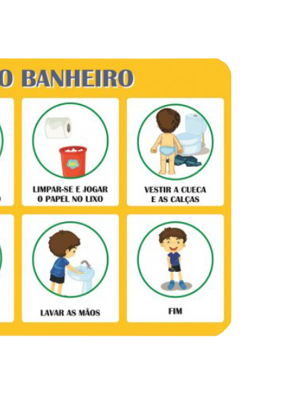 Os adesivos Passo a Passo da BBDU auxiliam a família no ensino de tarefas cotidianas que as crianças devem seguir para conseguirem cuidar de si mesmas, se desenvolverem e, consequentemente, se tornarem mais independentes. O adesivo (único) Passo a Passo - Usando o Banheiro — que vem na versão para meninos e meninas —, contém imagens que auxiliam a criança a cumprir as etapas de uso do banheiro.