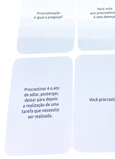 A procrastinação se refere ao atraso desnecessário e irracional de uma tarefa ou de uma tomada de decisão, acompanhado de desconforto psicológico e emoções negativas, como culpa e insatisfação. Trata-se de um comportamento comum e prevalente que pode gerar prejuízos significativos na qualidade de vida das pessoas. Deixar de procrastinar não é uma tarefa tão simples, mas é importante saber que é possível. Dessa forma, o objetivo desta ferramenta é auxiliar na identificação e no enfrentamento desse comportamento e, por consequência, no aumento de qualidade de vida.