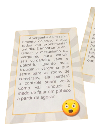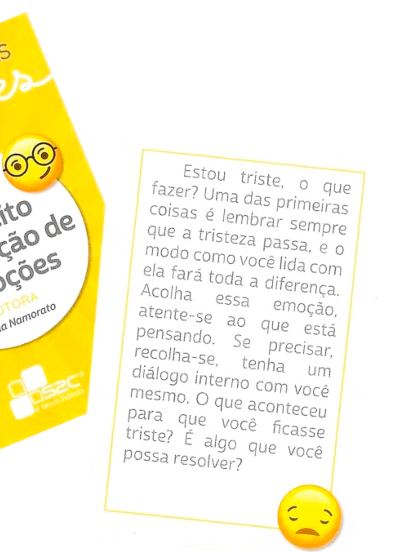 Este é um baralho terapêutico que aborda especificamente emoções e sentimentos. Foi cuidadosamente construído por 13 mulheres, empreendedoras e apaixonadas pelo que fazem. As psicólogas buscam, através desse projeto, esclarecer e desmistificar o papel das emoções na vida de uma pessoa. São 100 cartas que abordam os tipos mais comuns de emoções, definições, reflexões e exercícios práticos.
