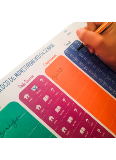 Este bloco foi desenvolvido para que o paciente possa monitorar seus comportamentos ou pensamentos ao longo da semana, mapeando a situação que desencadeou, onde ocorreu, o comportamento associado, a emoção e a intensidade. Na próxima sessão é feito o trabalho baseado nestas informações e traçado o plano de ação. Destaque a folha, preencha o nome do paciente, o período e oriente ele como preencher. Este instrumento traz vários insights para o paciente e pode ser usado mais de uma vez no monitoramento das situações que vem sendo trabalhadas nas sessões.