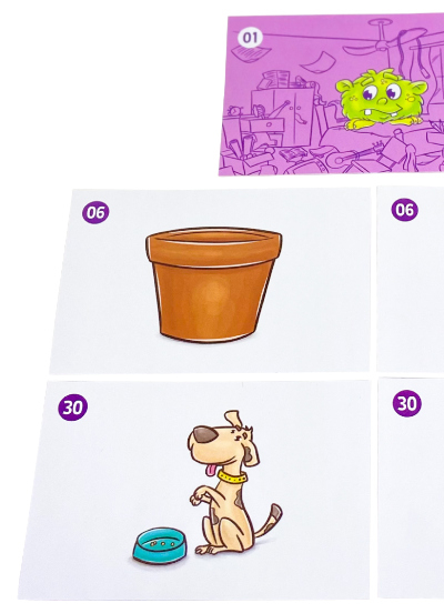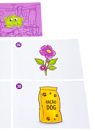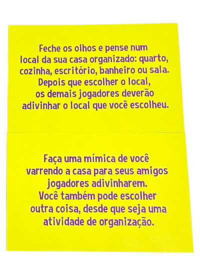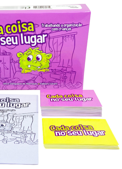 O material é composto por 83 cartas, das quais 63 formam 31 pares de organização, deixando uma carta sem par, que é o bicho desorganizado. O restante das cartas contém perguntas e desafios de organização.