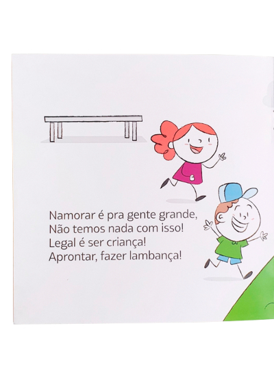 Infância é uma delícia, tudo é leve e descomplicado, principalmente o dar e receber amor. Dos pais, avós, irmãos, amigos e até dos bichinhos de estimação! Não adultize as crianças, deixe-as serem crianças. Não faça piadinhas ou perguntinhas de namoradinhos. E se precisar use esse livrinho. Em forma de poema ele mostra que as crianças tem mais o que fazer, e que namoro pode esperar. Então, não complique, Criança não namora, nem de brincadeira!