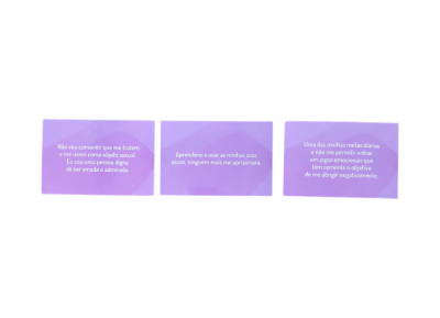 Esse material tem como objetivo ajudar mulheres que estão vivendo em situação de violência. Primeiro, a finalidade é psicoeducar acerca das diferentes formas de violência, posteriormente, após avaliar a necessidade de trabalhar formas de enfrentamento, o material será utilizado com a intenção de possibilitar ao paciente uma nova perspectiva de interpretação/ressignificação do processo que está sofrendo e, assim, enfraquecer os sentimentos negativos e os pensamentos difíceis e/ou sabotadores.