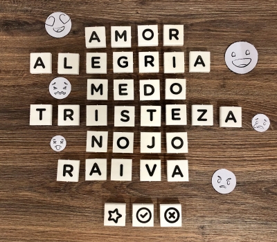 O recurso Escrevendo as Emoções foi desenvolvido para que a criança, através do exercício de soletrar, conheça, aprenda e converse sobre as emoções que está sentindo.