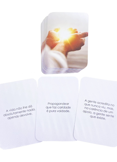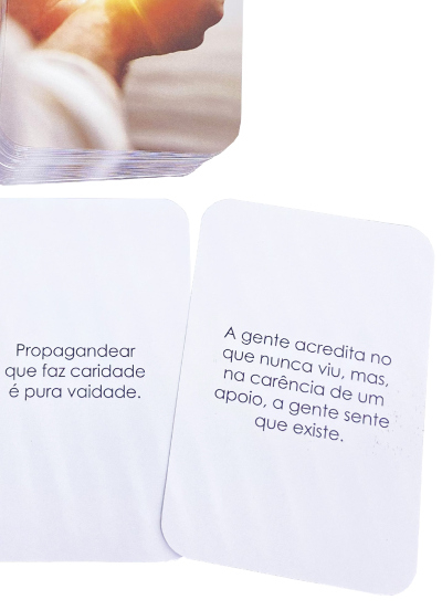 Estes cards são uma ferramenta para compreender o papel da espiritualidade na vida, na família, no trabalho. Eles apresentam informações com as quais as pessoas poderão se familiarizar e, de alguma forma, desmistificar certas distorções a respeito de algo tão natural e necessário para o enfrentamento das dificuldades.