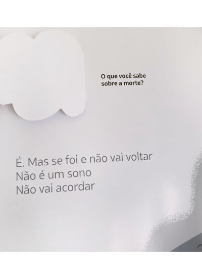 Livro em formato de poema que aborda o luto infantil de maneira sensível, com perguntas escondidas em formato pop-up, para que a criança escolha se quer conversar sobre aquele assunto nesse momento, respeitando seu próprio ritmo de elaboração da perda. Utilize o Estava Tudo Indo Bem para a expressão de sentimentos, compreensão da situação e vivência do processo de luto.