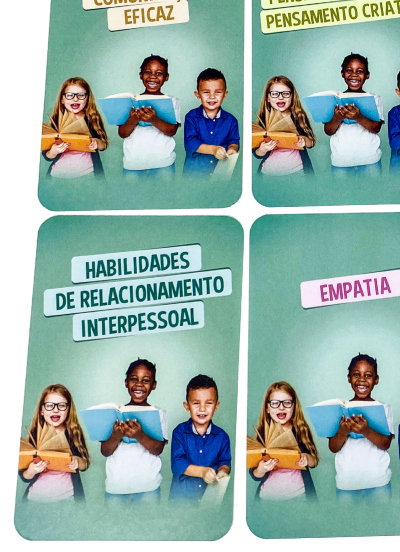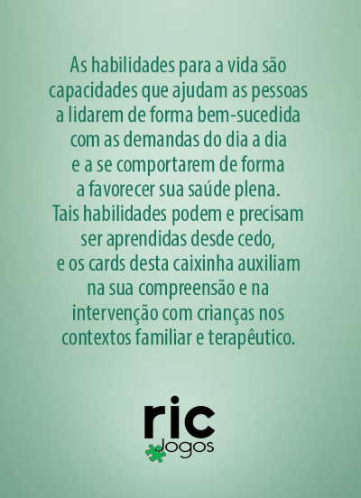 Os cards disponibilizam sete tópicos com temáticas relacionadas às dez habilidades para a vida: (1) autoconhecimento, (2) habilidades de relacionamento interpessoal, (3) empatia, (4) manejo das emoções e do estresse, (5) comunicação eficaz, (6) pensamento crítico e criativo e (7) tomada de decisão e resolução de problemas.