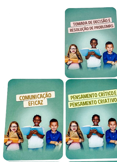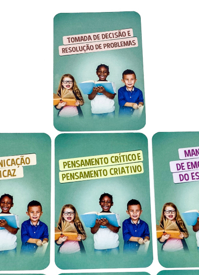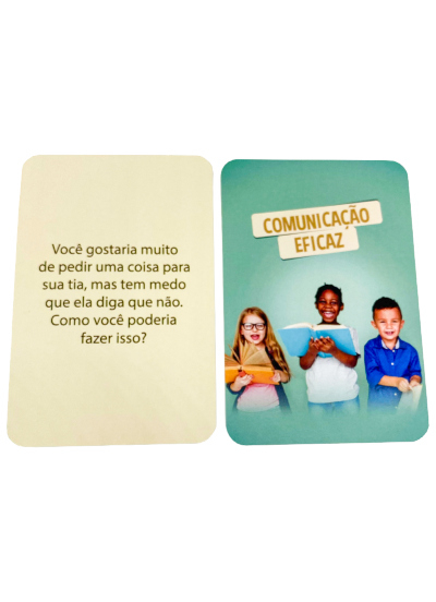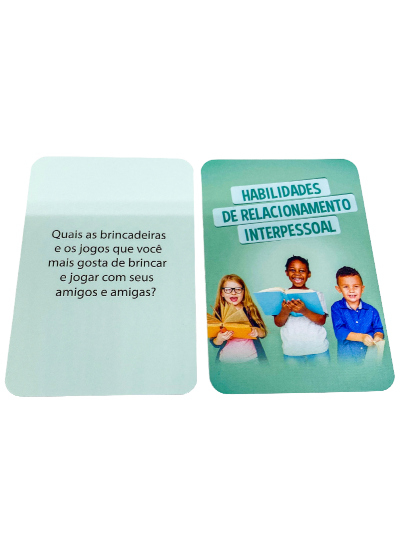O desenvolvimento das habilidades para a vida é incentivado nos cards Habilidades para a vida com crianças por meio de perguntas reflexivas que facilitam o diálogo sobre o tema.