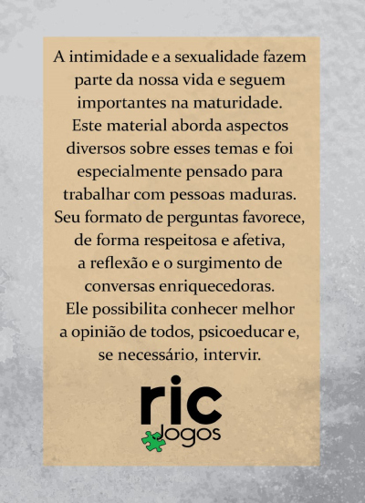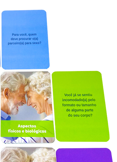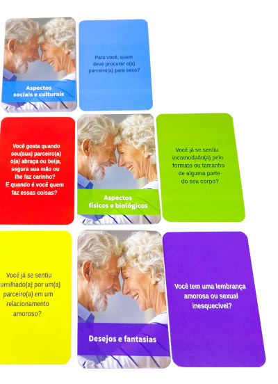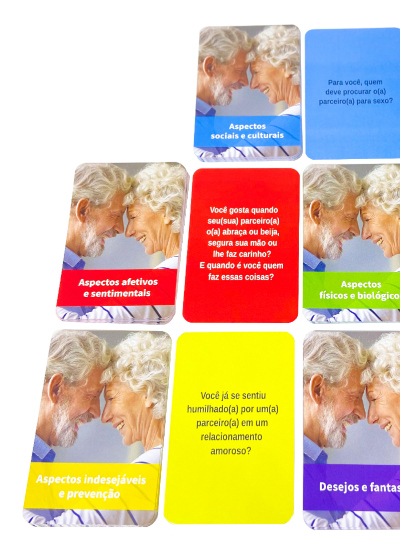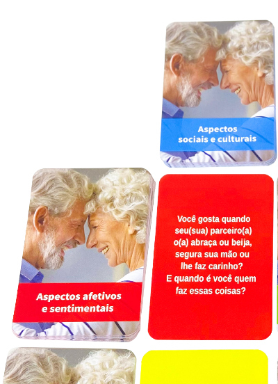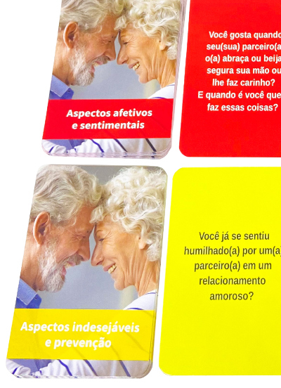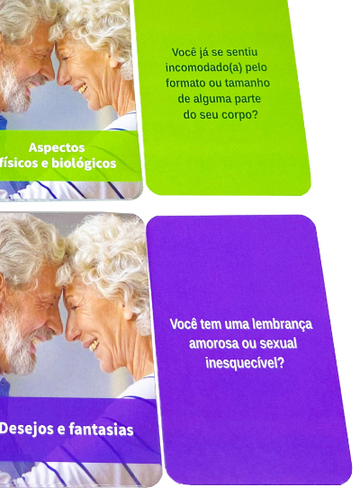 Visando contribuir para esse cenário, os cards terapêuticos Intimidade e sexualidade na maturidade: 100 perguntas para a clínica com idosos tem o objetivo de fomentar conversas abertas, instrutivas e libertadoras sobre o importante tema das relações afetivas e sexuais.