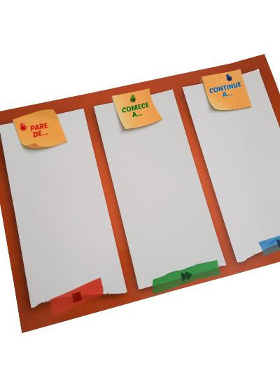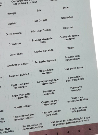 Este jogo tem como objetivo instigar o paciente a refletir sobre seus comportamentos, sentimentos e pensamentos, observando e diferenciando o que ele deve parar, começar e continuar.