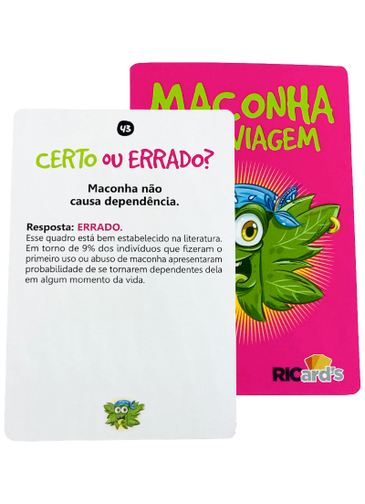 É composto por 56 cards com perguntas de certo ou errado referente a maconha.