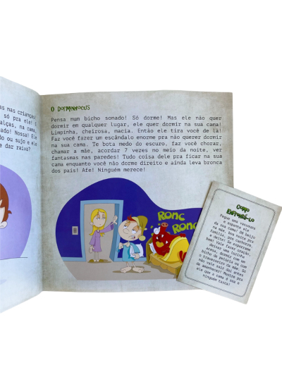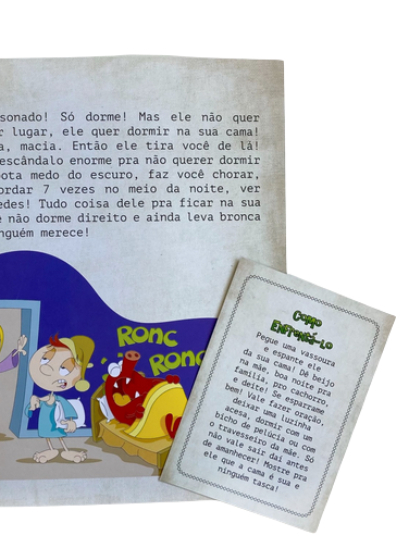 Tem o Tacamedus, o Loroterirus, o Briguentus, o Corpumolis, e mais uns outros "chatinhos". Veja: "parece que não é a criança que tem problemas, é o monstrinho que causa esses problemas a ela!". E com essa brincadeira, com essa fantasia você o ajuda a aceitar os objetivos terapêuticos. Acompanha cartas Anti-Monstro com enfrentamentos para cada um dos problemas.