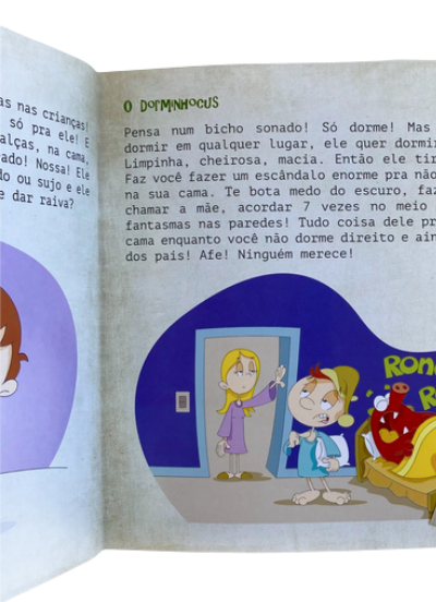 Livro elaborado para o trabalho de reconhecimento dos problemas com as crianças. Coloca o problema fora da vida da criança culpando os monstrinhos! Criaturinhas que perturbam as crianças, criam problemas, constrangimentos, dão preguiça, contam mentiras.