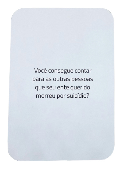 Este livro em forma de caixinha foi desenvolvido por meio de pesquisas a respeito de estratégias de posvenção realizadas pelo Instituto Vita Alere. As perguntas foram elaboradas a partir de diálogos construídos em grupos de apoio e no atendimento de pessoas e famílias que perderam alguém para o suicídio. Têm como objetivo promover reflexões diante dos processos de luto por suicídio, além de oferecer acolhimento a todos que, de alguma maneira, foram impactados por essa perda.