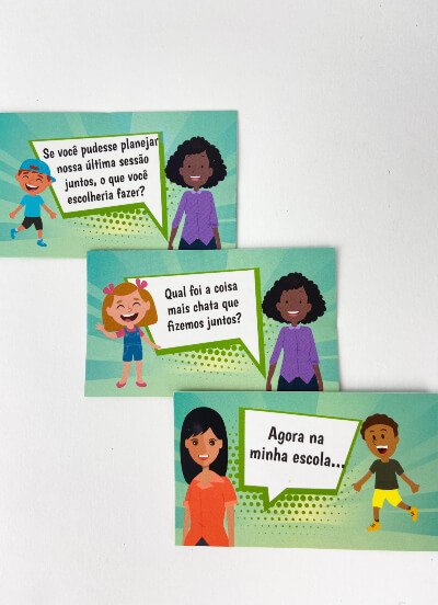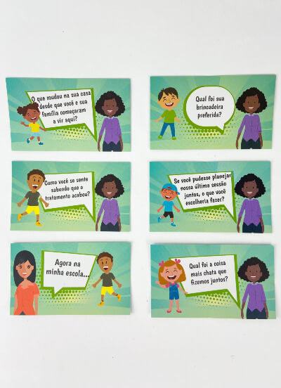 O jogo sugere uma atividade prática que pode ser um desenho, uma carta, ou até mesmo escreverem juntos cartões de enfrentamento para a criança se lembrar de tudo que aprendeu durante o processo terapêutico, e usá-los se sentir necessidade, auxiliando na prevenção à recaída
