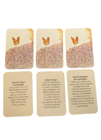 Cada card apresenta frases que estimulam reflexões profundas, promovem mudanças comportamentais e cognitivas, e ajudam no manejo das emoções, contribuindo para o autoconhecimento e a autorreflexão.