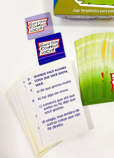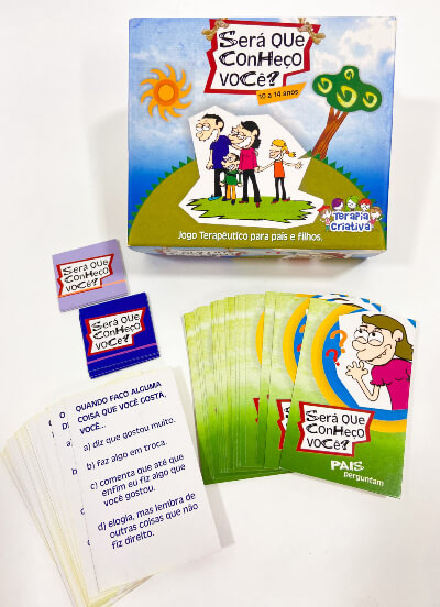 Este jogo foi elaborado para ser utilizado em sessões psicoterápicas conjuntas entre pais e filhos, com dois participantes (criança/mãe ou criança/pai). O jogo contém perguntas sobre o cotidiano, preferências e comportamentos dos pais e da criança. Cada pergunta é seguida de quatro alternativas de resposta, o jogador da vez deve escolher a resposta que mais se parece com a escolha que seu parceiro faria naquela situação. Neste jogo não há ganhadores, pois a ideia é se conhecerem e avaliarem a relação.